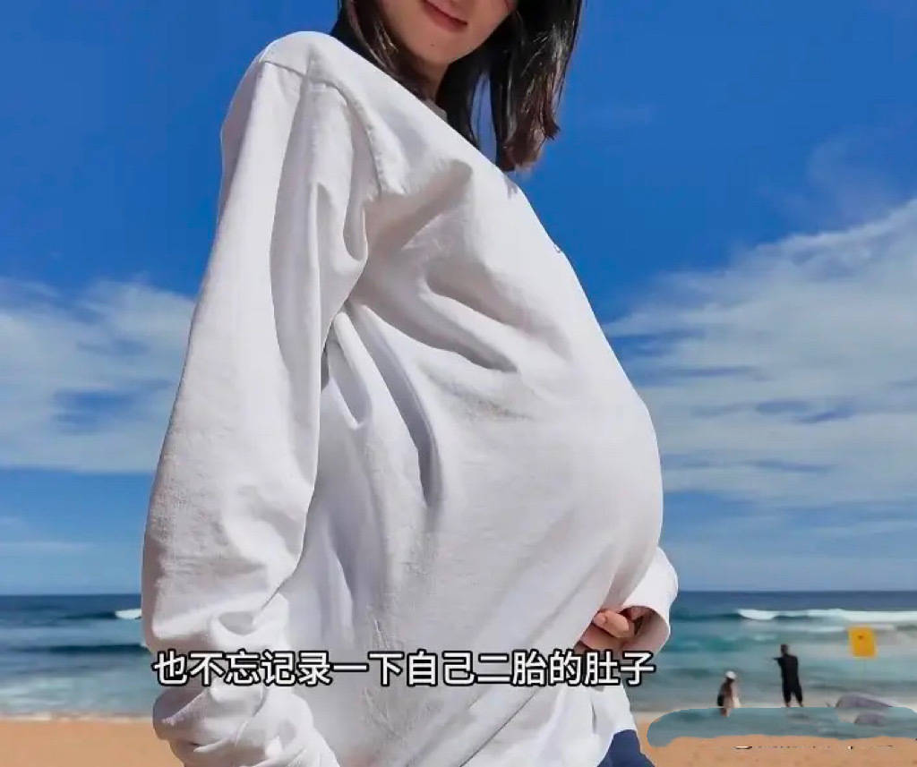程晓玥澳洲过夏天,𾁋月孕肚�斤女儿,二胎衣服是男孩色